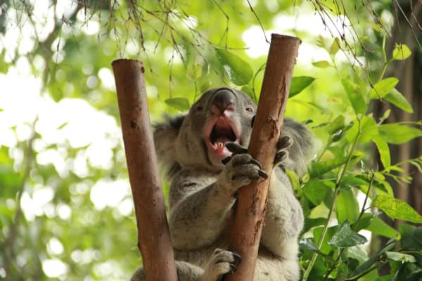 Tienen garras afiladas diseñadas para clavar madera y una mordida potente. No se debe intentar tocar a un koala salvaje.